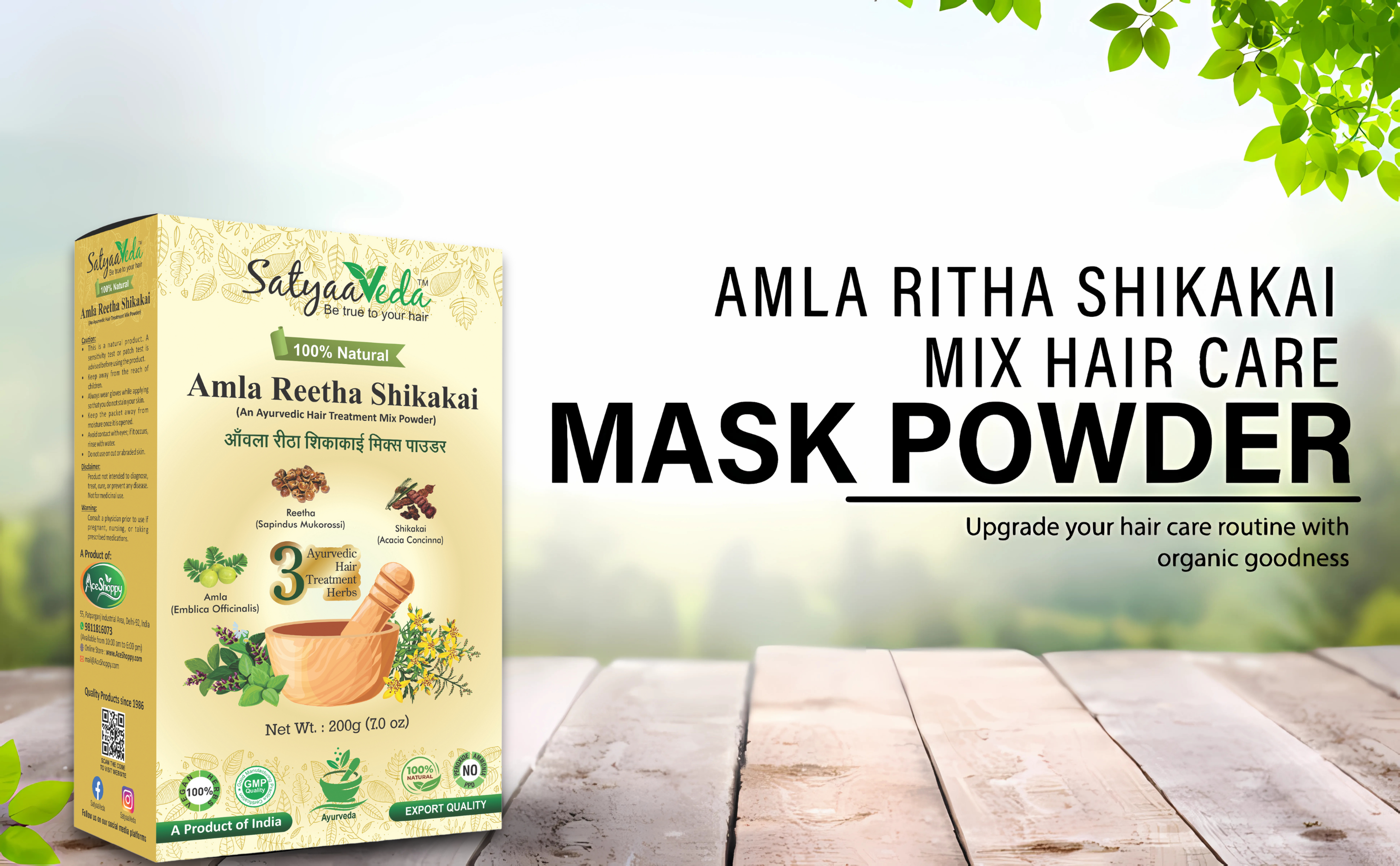 SatyaaVeda Organic Herbal Shampoo & Conditioner Powder – 100g
