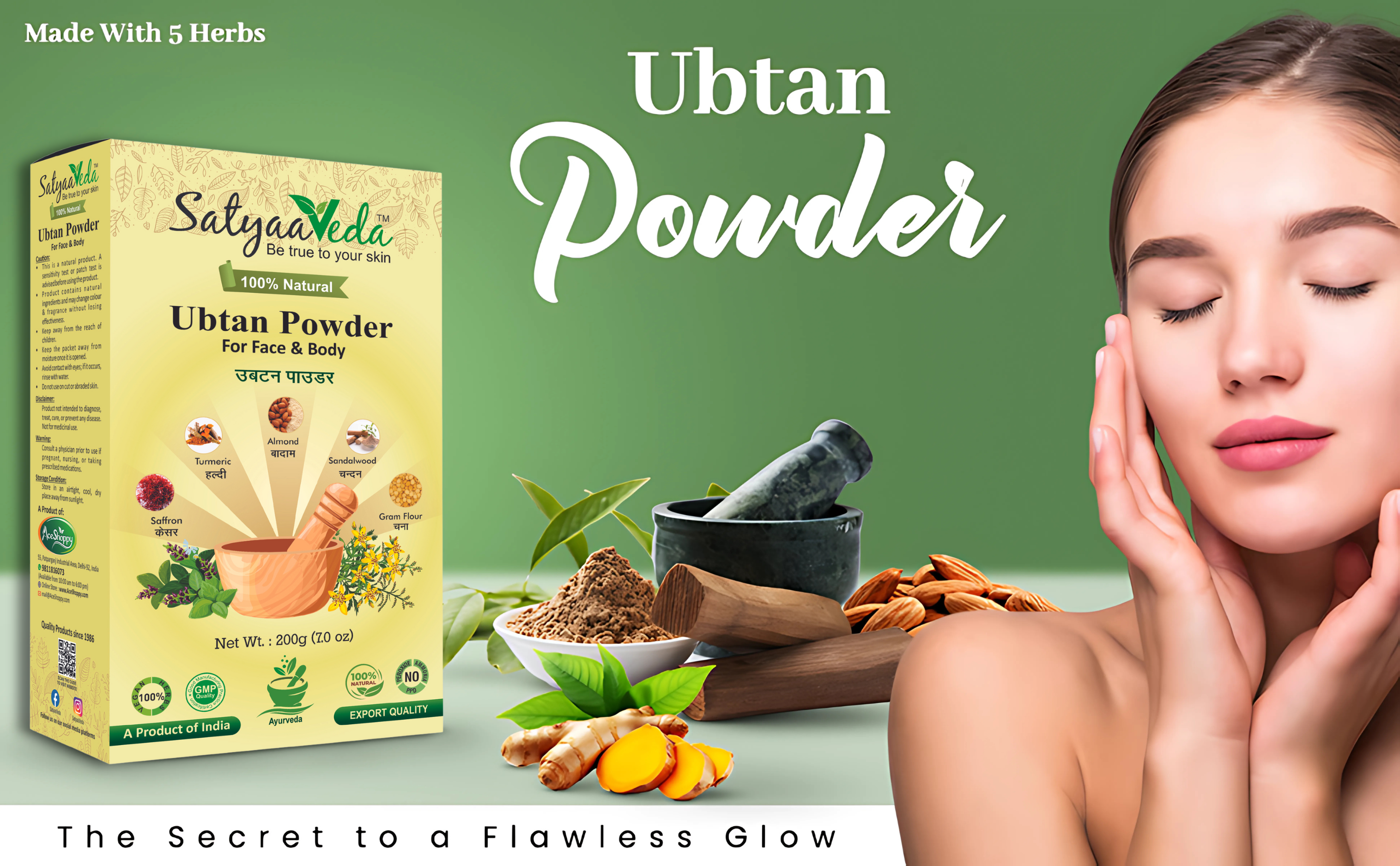 SatyaaVeda Herbal Ubtan Face & Body Pack | Chemical-Free Ayurvedic 200g