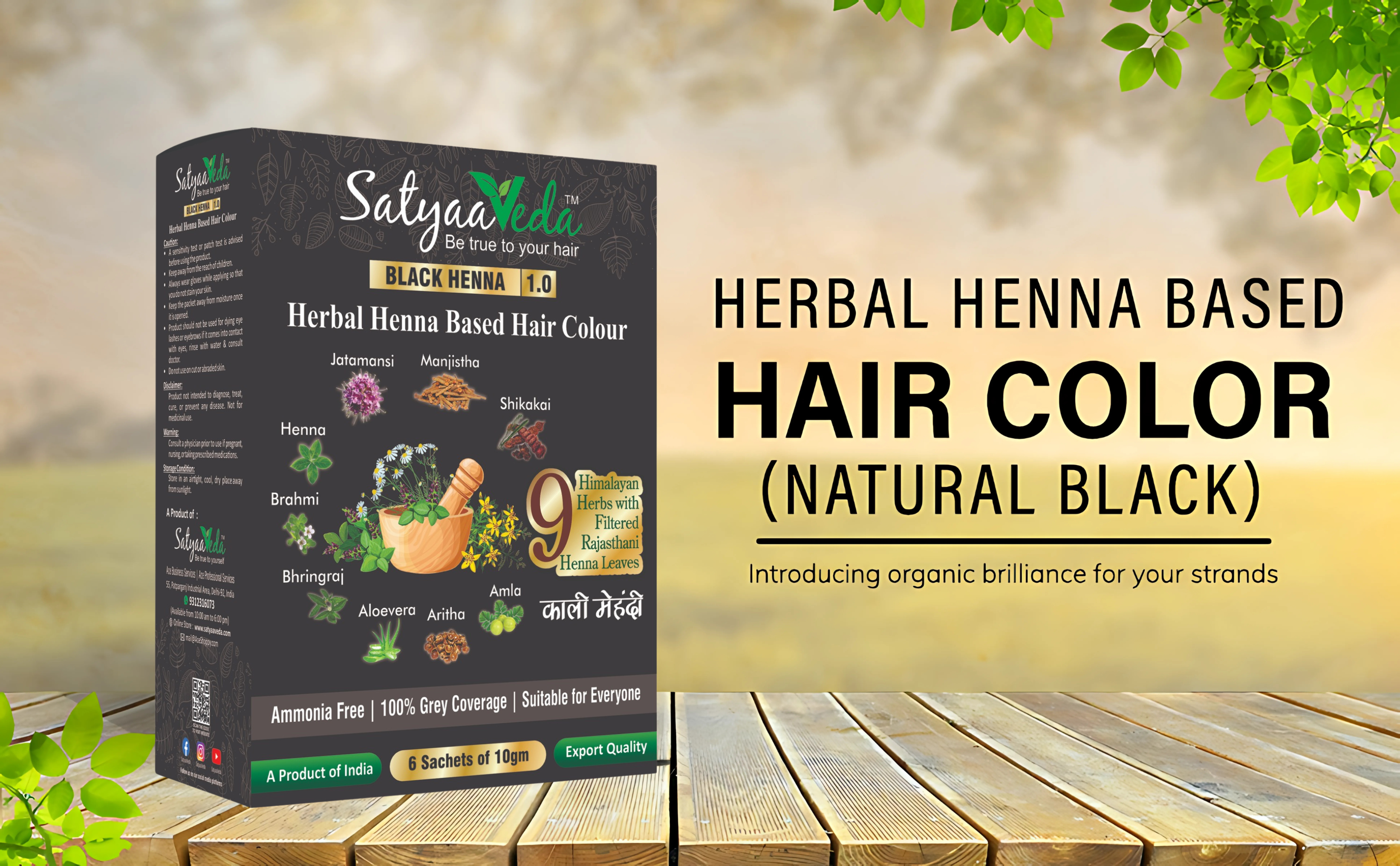 SatyaaVeda Herbal Black Hair Colour | Henna-Based Ammonia-Free 60g