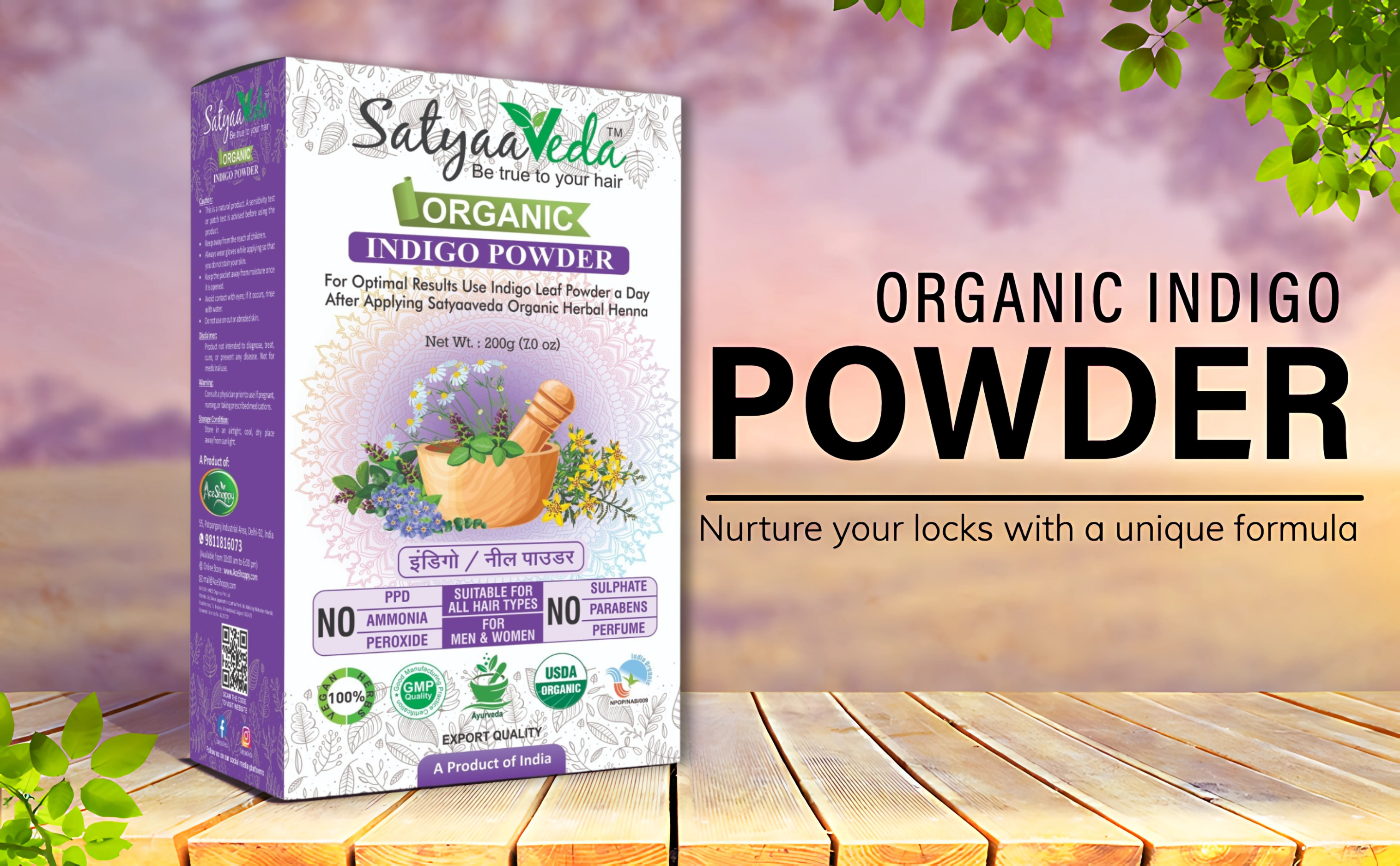 SatyaaVeda Organic Herbal Henna & Indigo Combo for Hair Colour & Care 100g (Pack of 2)