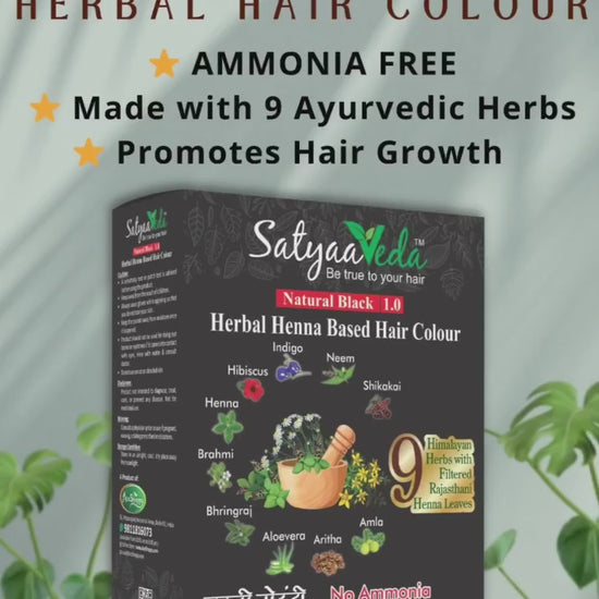 SatyaaVeda Herbal Black Hair Colour | Henna-Based Ammonia-Free 60g